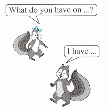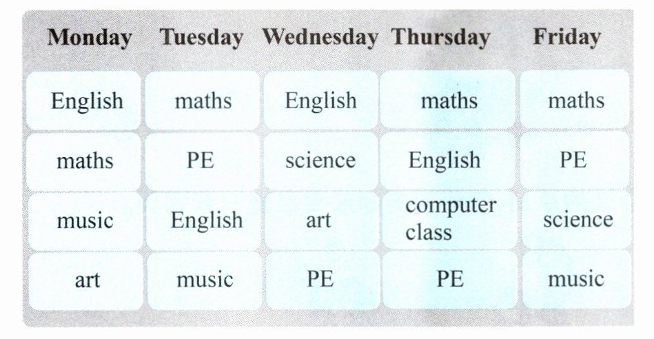3. —What do you have on Wednesday? —I have English, science, art and PE.