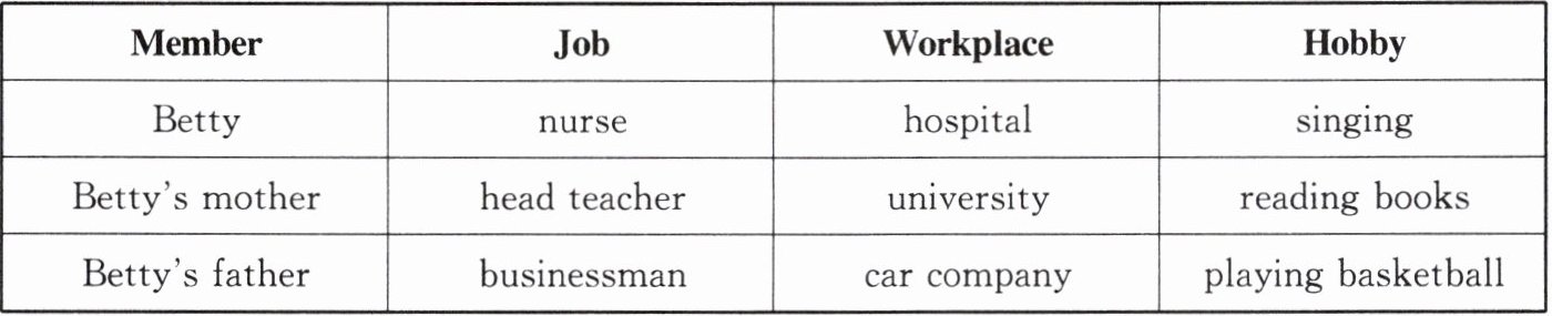 阅读表格内容,以“Betty’s family”为题写一篇作文。