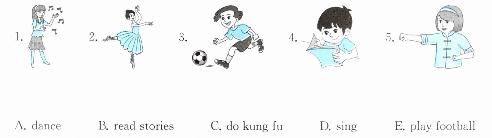 1. dancing 2. singing 3. reading 4. playing 5. doing