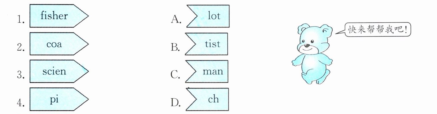 一、粗心的小笨熊把单词卡折断了,快来帮它还原吧!