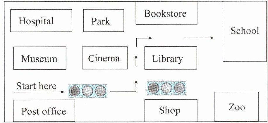 at the second traffic lights(交通信号灯). Go straight again and turn right