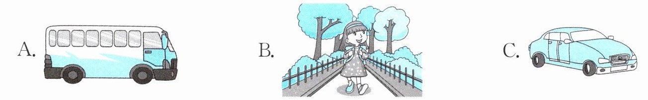 )2. Alice usually comes to school by bike. Sometimes she comes by bus. (
