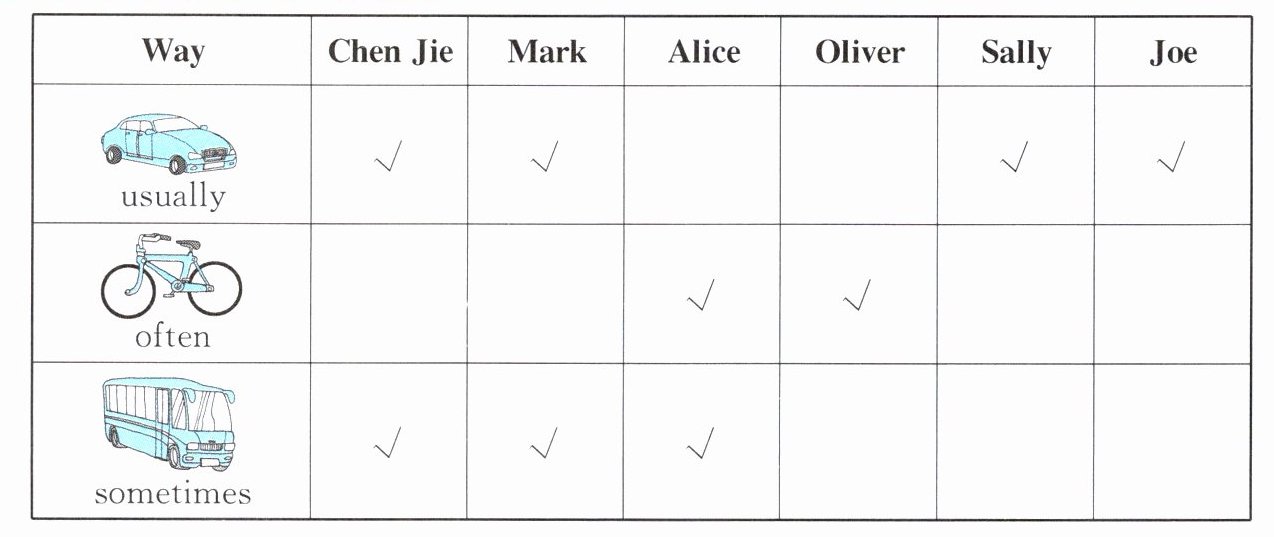 )1. Chen Jie and Mark usually come to school by car. Sometimes they come by bus. (
