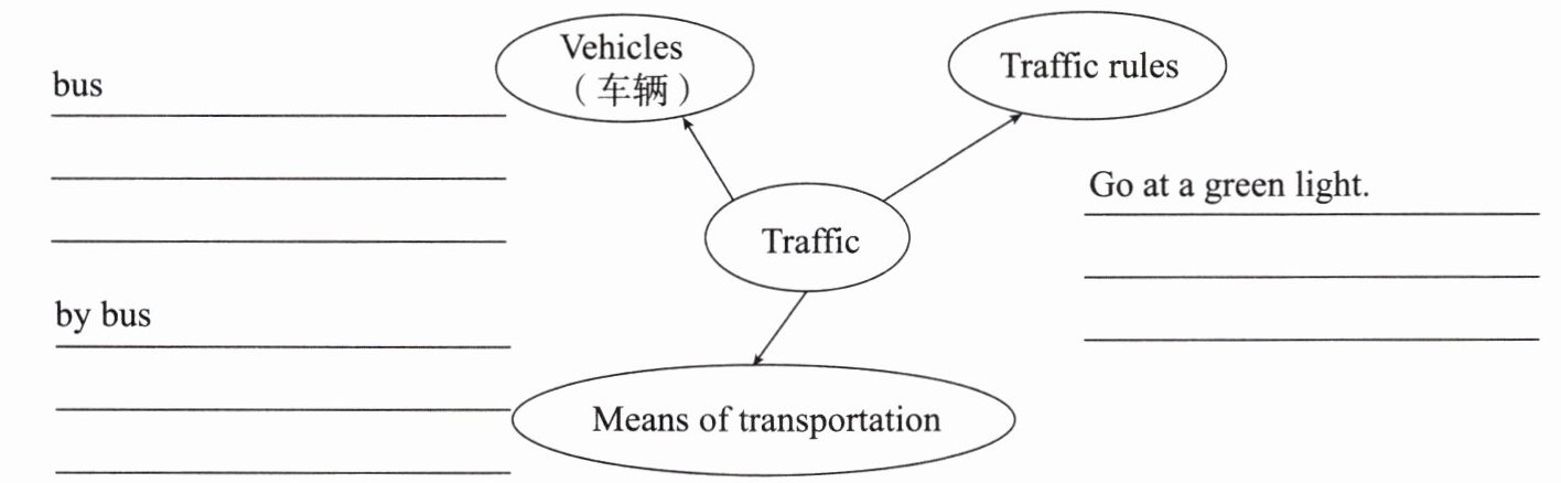 十、谈到交通,你能想到什么?根据提示,完成交通思维导图吧。(10 分)