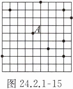 6. 如图 24.2.1 - 15,在网格(每个小正方形的边长均为$1$)中选取$9$个格点(格线的交点称为格点),若以$A$为圆心,$r$为半径画圆,选取的格点中除点$A$外恰好有$3$个在圆内,则$r$的取值范围为(