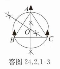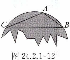 1. 小红不小心把家里的一块圆形玻璃镜打碎了,需要配制一块同样大小的玻璃镜,工人师傅在一块如图 24.2.1 - 12 所示的玻璃残片的边缘描出了点$A$,$B$,$C$,绘出$\triangle ABC$,则这块玻璃镜的圆心是(