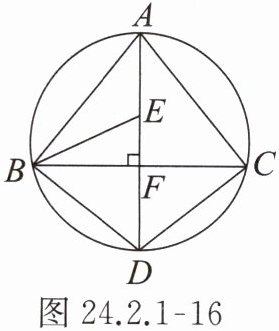 8. 如图 24.2.1 - 16,$AD$为$\triangle ABC$外接圆的直径,$AD \perp BC$,垂足为$F$,$\angle ABC$的平分线交$AD$于点$E$,连接$BD$,$CD$。