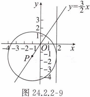 10. 如图24.2.2-9,点P为正比例函数y=$\frac{3}{2}$x图象上的一个动点,⊙P的半径为3,设点P的坐标为(x,y)。