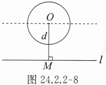 8. (湖南永州中考)如图24.2.2-8,给定一个半径长为2的圆,圆心O到水平直线l的距离为d,即OM=d。我们把圆上到直线l的距离等于1的点的个数记为m。如d=0时,l为经过圆心O的一条直线,此时圆上有四个到直线l的距离等于1的点,即m=4。由此可知: