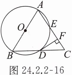1. (湖北咸宁中考节选)如图24.2.2 - 16,在△ABC中,AB = AC,以AB为直径的⊙O与边BC,AC分别交于D,E两点,过点D作DF⊥AC,垂足为点F。