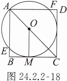 2. 如图24.2.2 - 18,O为正方形ABCD对角线AC上一点,以O为圆心,OA长为半径的⊙O与AB,AD分别相交于点E,F,与BC交于点M,且OM⊥BC,求证:CD与⊙O相切。