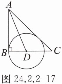 【例2】如图24.2.2 - 17,在Rt△ABC中,∠B = 90°,∠BAC的平分线交BC于点D,以D为圆心,DB的长为半径作⊙D。求证:AC与⊙D相切。