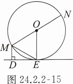 【例1】(湖北黄冈中考节选)已知:如图24.2.2 - 15,MN为⊙O的直径,ME是⊙O的弦,MD垂直于过点E的直线DE,垂足为点D,且ME平分∠DMN。