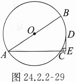 6. (山东济宁中考)如图24.2.2 - 29,已知⊙O的直径AB = 12,弦AC = 10,D是$\overset{\frown}{BC}$的中点,过点D作DE⊥AC交AC的延长线于点E。