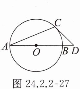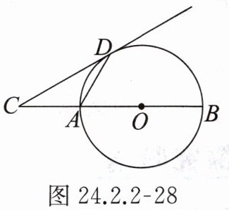 5. 如图24.2.2 - 28所示,直线CD与以线段AB为直径的圆相切于点D,并交BA的延长线于点C,且AB = 2,AD = 1,则∠ADC的度数为