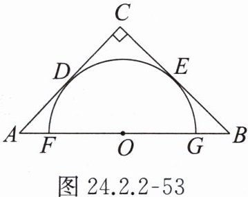 8. 如图 $24.2.2 - 53$,半圆 $O$ 与等腰直角三角形两腰 $CA$,$CB$ 分别切于 $D$,$E$ 两点,直径 $FG$ 在 $AB$ 上,若$BG=\sqrt{2} - 1$;则$\triangle ABC$ 的周长为