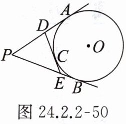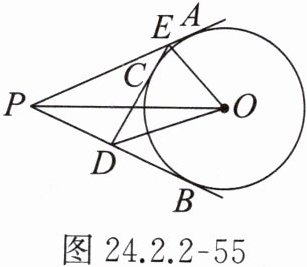 10. 如图 $24.2.2 - 55$ 所示,已知 $PA$,$PB$,$DE$ 分别切$\odot O$ 于 $A$,$B$,$C$ 三点.