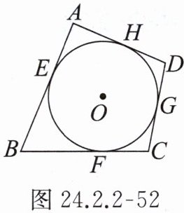 7. 如图 $24.2.2 - 52$ 所示,四边形 $ABCD$ 外切于$\odot O$,切点分别为 $E$,$F$,$G$,$H$,且 $AB = 16$,$CD = 10$,求四边形 $ABCD$ 的周长.