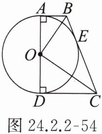 9. 如图 $24.2.2 - 54$,在四边形 $ABCD$ 中,$AD\perp AB$,$AD\perp CD$,以 $AD$ 为直径的圆切 $BC$ 于点 $E$,连接 $OB$,$OC$,则 $OB$ 与 $OC$ 有何位置关系?
