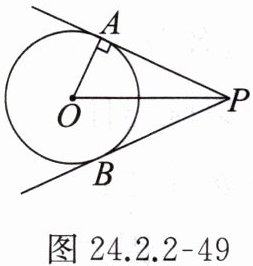 4. 如图 $24.2.2 - 49$,$PA$,$PB$ 分别切$\odot O$ 于点 $A$,$B$,$\angle APB = 50°$,则$\angle AOP =$