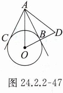 2. 如图 $24.2.2 - 47$,$AB$,$AC$ 为$\odot O$ 的切线,$B$,$C$是切点,延长 $OB$ 到点 $D$,使 $BD = OB$,连接 $AD$. 如果$\angle DAC = 78°$,那么$\angle D =$(