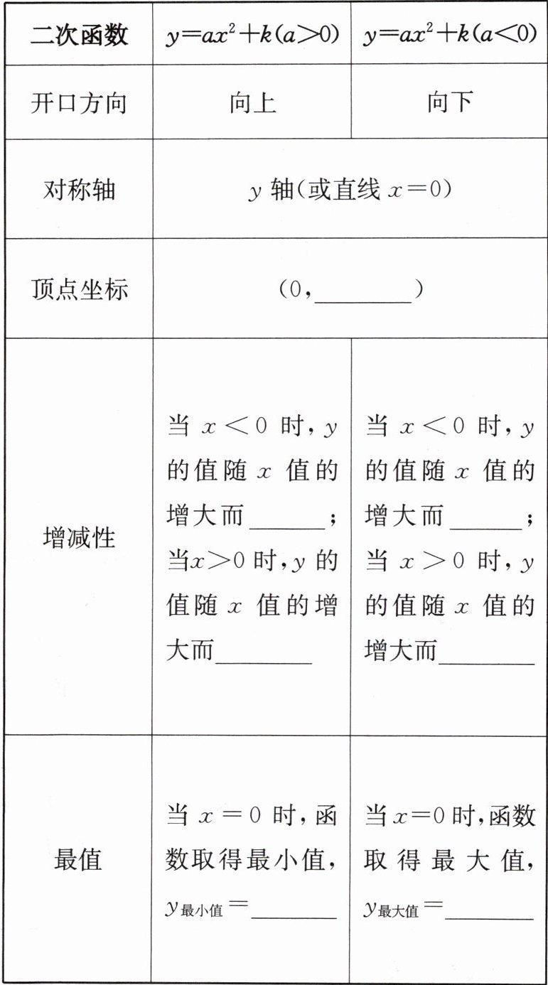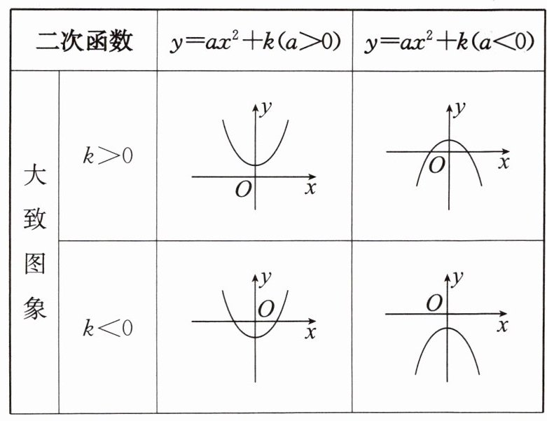 2. 二次函数$y = ax^{2}+k(a\neq0)$的图象和性质