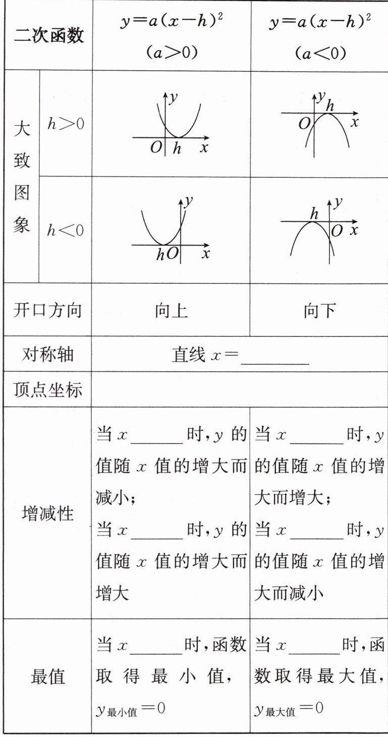 2. 二次函数$y = a(x - h)^{2}(a\neq0)$的图象和性质