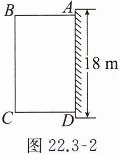 如图22.3 - 2所示,若例1中墙长是 $ 18 $ m,当 $ x $ 为何值时,满足条件的绿化带的面积最大?