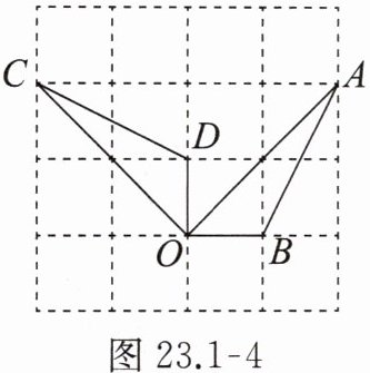 1. 如图 23.1 - 4,点 $ A $,$ B $,$ C $,$ D $,$ O $ 都在方格纸的格点上,若 $ \triangle AOB $ 绕点 $ O $ 按逆时针方向旋转到 $ \triangle COD $ 的位置,则旋转的角度为(
