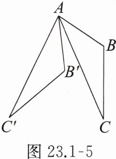 2. 如图 23.1 - 5 所示,在 $ \triangle ABC $ 中,$ \angle BAC = 33^{\circ} $,将 $ \triangle ABC $ 绕点 $ A $ 按顺时针方向旋转 $ 50^{\circ} $,对应得到 $ \triangle AB'C' $,则 $ \angle B'AC $ 的度数为____。
