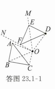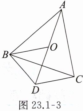 【例 1】如图 23.1 - 3,在 $ \triangle ABC $ 中,$ AB = BC $,$ O $ 是 $ \triangle ABC $ 内一点,将 $ \triangle ABO $ 按顺时针方向旋转后能与 $ \triangle CBD $ 重合。