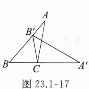 7. (山东聊城中考) 如图 23.1 - 17,将 $ \triangle ABC $ 绕点 $ C $ 顺时针旋转,使点 $ B $ 落在 $ AB $ 边上点 $ B' $ 处,此时,点 $ A $ 的对应点 $ A' $ 恰好落在 $ BC $ 边的延长线上,下列结论错误的是(