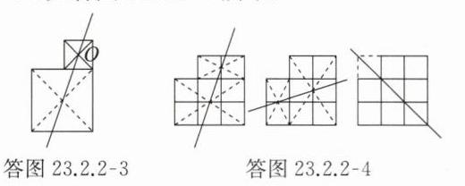 (2)八个大小相同的正方形按如图 23.2.2 - 9 所示的方式摆放,求作直线将整个图形分成面积相等的两部分(用三种方法分割)。