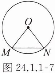 3.如图24.1.1-7所示,$MN$为$\odot O$的弦,$\angle N = 52^{\circ}$,则$\angle MON$的度数为 (