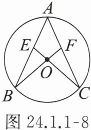 6.如图24.1.1-8,$AB$,$AC$为$\odot O$的弦,连接$CO$,$BO$并延长,分别交弦$AB$,$AC$于点$E$,$F$.已知$\angle B = \angle C$,求证:$CE = BF$.