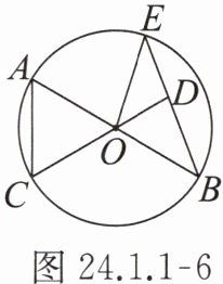 1.如图24.1.1-6,$A$,$B$,$C$,$E$四点在$\odot O$上,点$A$,$O$,$B$,点$C$,$O$,$D$,点$B$,$D$,$E$分别共线,则图中弦的条数为 (