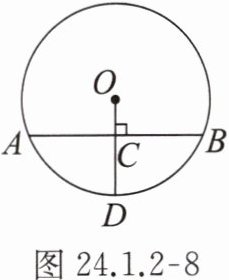 1.如图24.1.2-8,在$\odot O$中,半径OD垂直于弦AB,垂足为C,$OD = 13cm$,$AB = 24cm$,则$CD =$