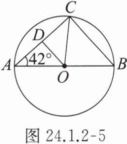 3.如图24.1.2-5所示,AB是$\odot O$的直径,$\angle BAC = 42^{\circ}$,点D是弦AC的中点,求$\angle DOC$的度数.