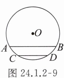 2.如图24.1.2-9,AB,CD都是$\odot O$的弦,且$AB// CD$,求证:$\overset{\frown}{AC}=\overset{\frown}{BD}$.