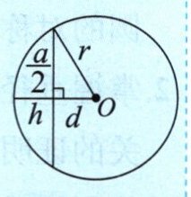 1. 四变量:弦长$a$,圆心到弦的距离$d$,半径$r$,弓形高$h$。