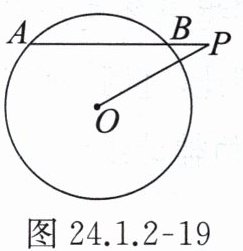 2.如图24.1.2-19,$\odot O$的半径是3,点P是弦AB延长线上的一点,连接OP,若$OP = 4$,$\angle APO = 30^{\circ}$,则弦AB的长为 (