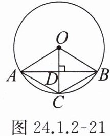 4.如图24.1.2-21,已知在$\odot O$中,AB是弦,半径$OC\perp AB$,垂足为D.要使四边形OACB为菱形,还需添加一个条件,这个条件可以是 (