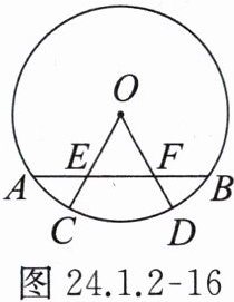 4.如图24.1.2-16,AB是$\odot O$的弦,半径OC,OD分别交AB于点E,F,且$OE = OF$,求证:$AE = BF$.