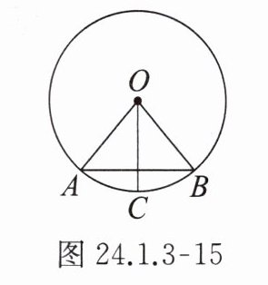 3. 如图24.1.3-15,在⊙O中,点C是$\overset{\frown}{AB}$的中点,∠A = 50°,则∠BOC的度数为