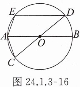 4. 如图24.1.3-16,AB,CD是⊙O的直径,AB//DE,AC = 3,则AE =