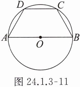 4. 如图24.1.3-11,AB是⊙O的直径,点D,C都是⊙O上的点,若BC = CD = DA = 3 cm,则四边形ABCD的周长为