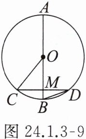 2. 如图24.1.3-9,CD是⊙O的弦,直径AB过CD的中点M,若∠BOC = 40°,则∠ABD =(