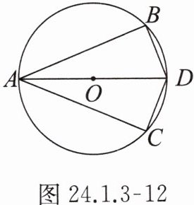 5. 如图24.1.3-12,在⊙O中,弦AB = AC,AD是⊙O的直径,试判断弦BD与CD是否相等,并说明理由.
