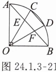 9. 如图24.1.3-21,∠AOB = 90°,C,D是$\overset{\frown}{AB}$的三等分点,AB分别交OC,OD于点E,F,求证:AE = BF = CD.
