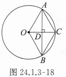 6. 如图24.1.3-18,已知OC是⊙O的半径,过OC的中点D作OC的垂线交⊙O于点A,B,以下结论: